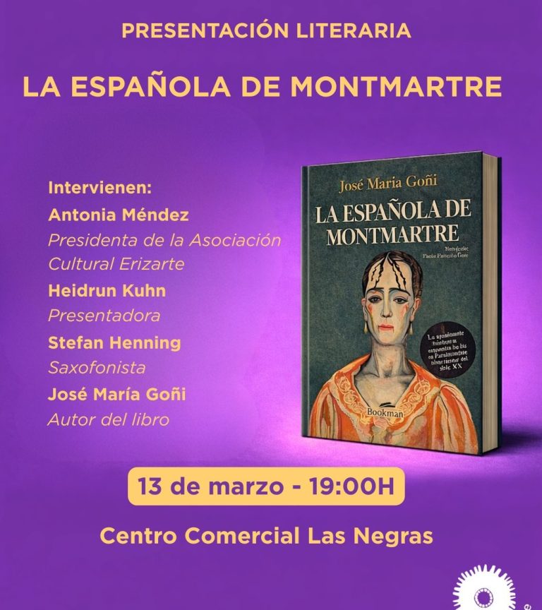 Intervienen: Antonia Méndez (Presidenta Asociación Cultural Erizarte), Heidrum Kuhn (Presentadora), Stefan Henning (Saxofonista), José María Goñi (Autor del libro)